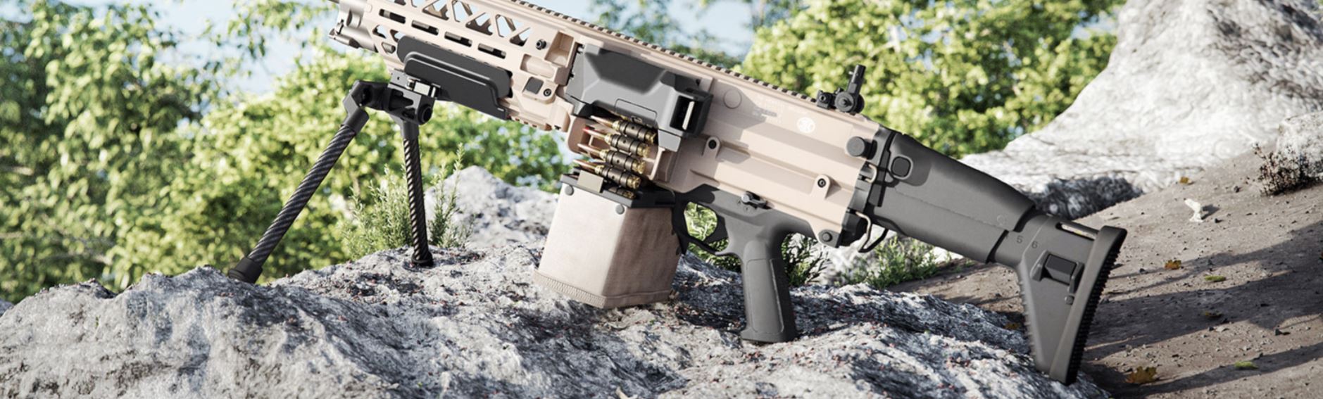 The FN EVOLYS™ 7.62 is an ultra-lightweight, belt-fed machine gun chambered in 7.62×51mm NATO, designed to deliver the power of a general-purpose machine gun with the ergonomics of a rifle. Engineered for improved mobility and reduced operator load, it offers exceptional balance and controllability.