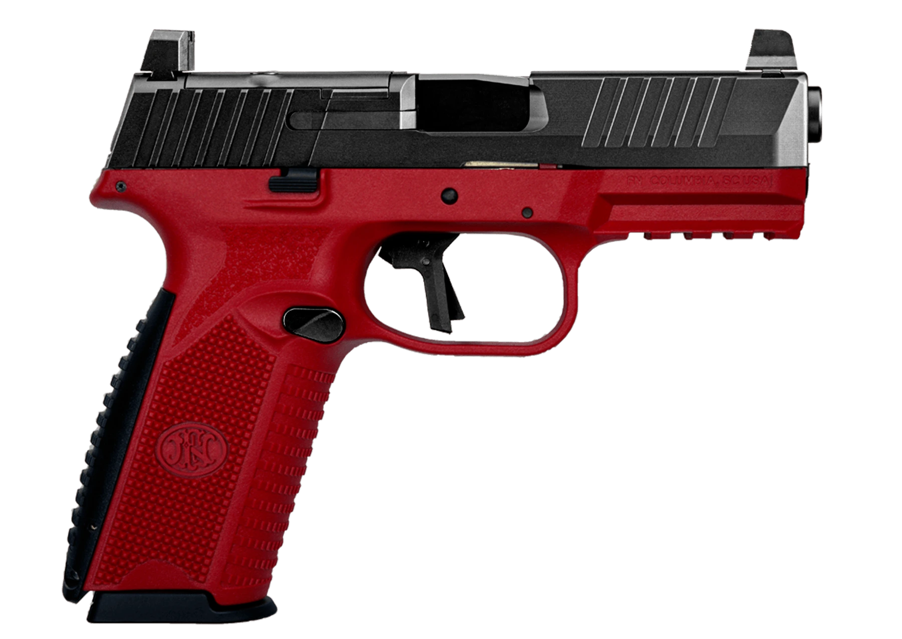 The FN 509 Training pistol is an entirely inert, red-framed polymer replica of the FN 509 that shares the same ergonomic features — including grip angle, texture, slide profile, sights, and controls — but is designed for safe, non-firing training use.