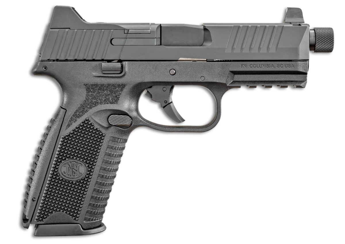 It features FN’s Low-Profile Optics Mounting System™ for direct miniature red dot sight installation, suppressor-height night sights, fully ambidextrous controls, MIL-STD-1913 accessory rail, and high-capacity magazine options up to 24 + 1 rounds for both defensive and professional applications.