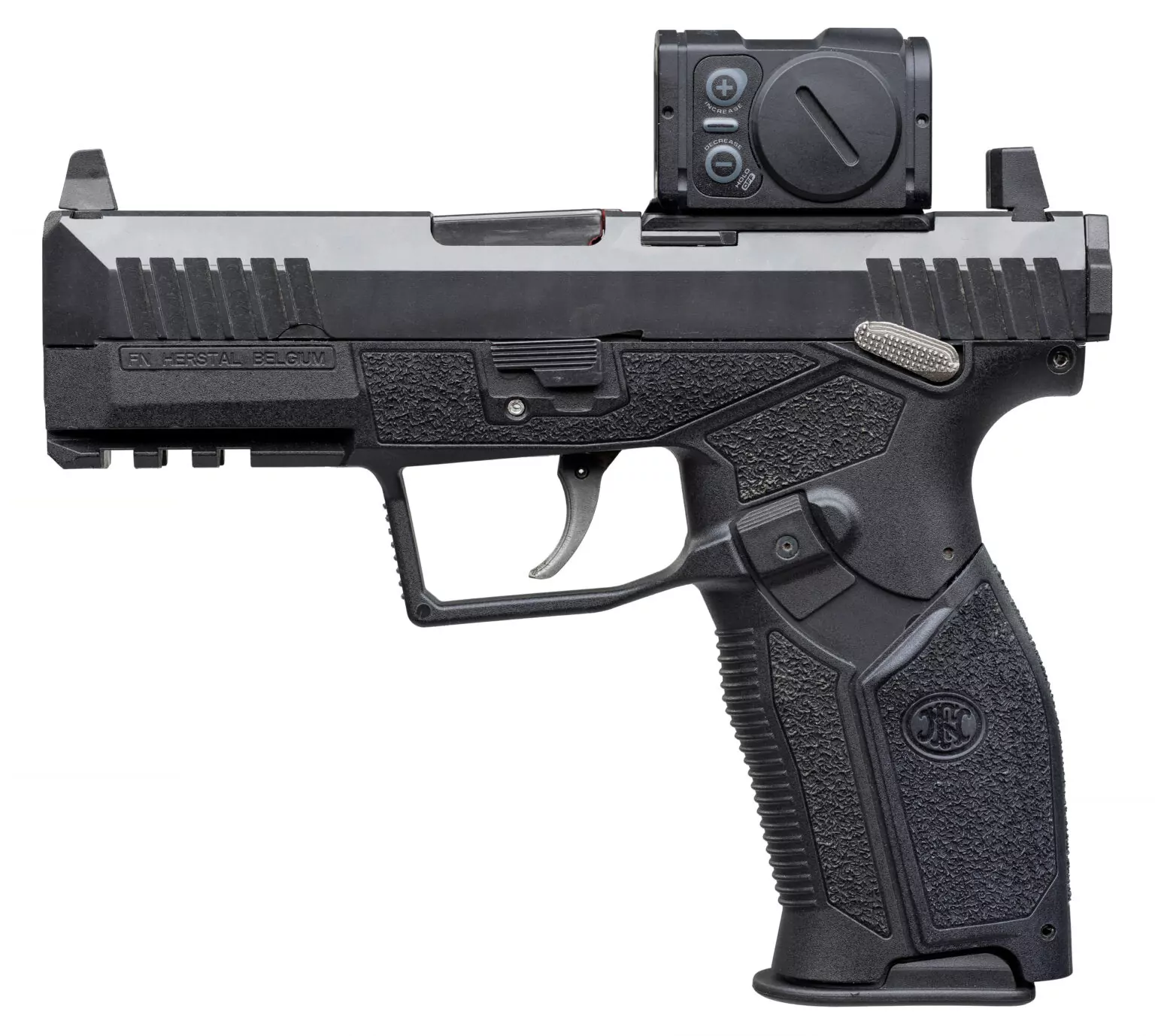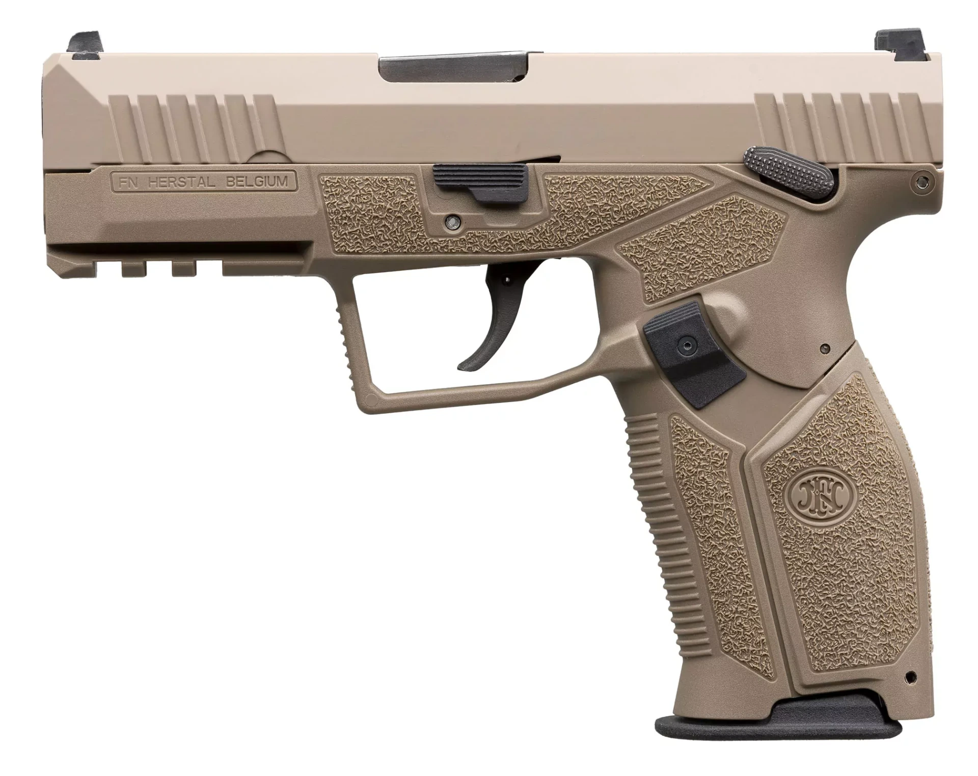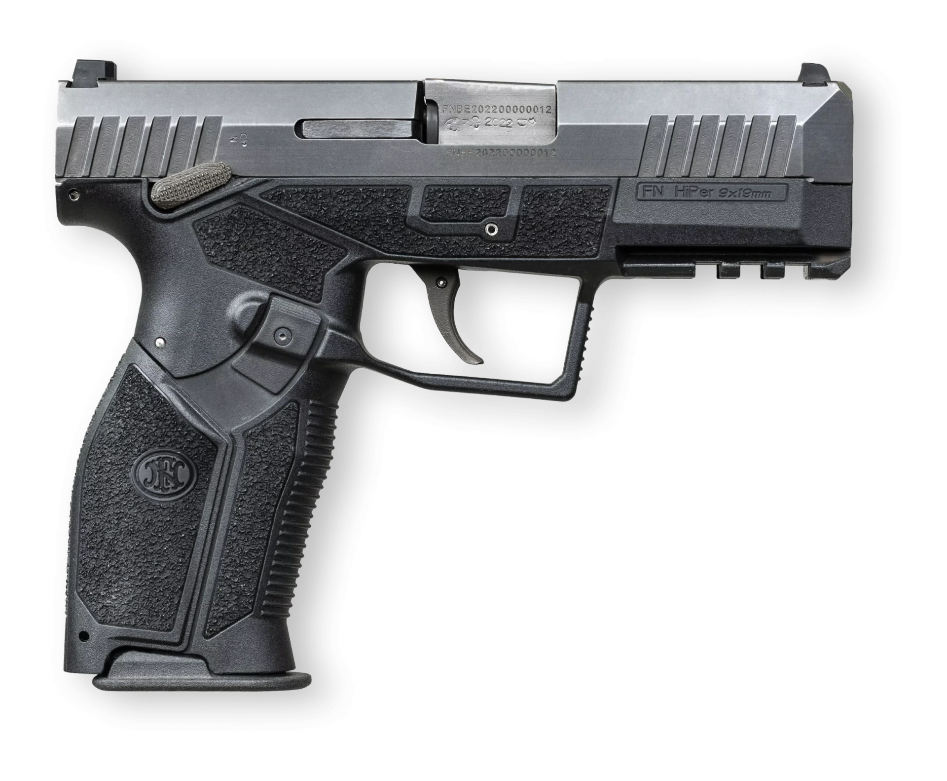 The FN HiPer is a modern 9×19 mm striker-fired semi-automatic pistol fully designed, developed, and manufactured in Belgium by FN Herstal on a polymer frame with an internal metal chassis, ergonomic grip panels, and a short-recoil, locked-breech action for durable, reliable service use.
