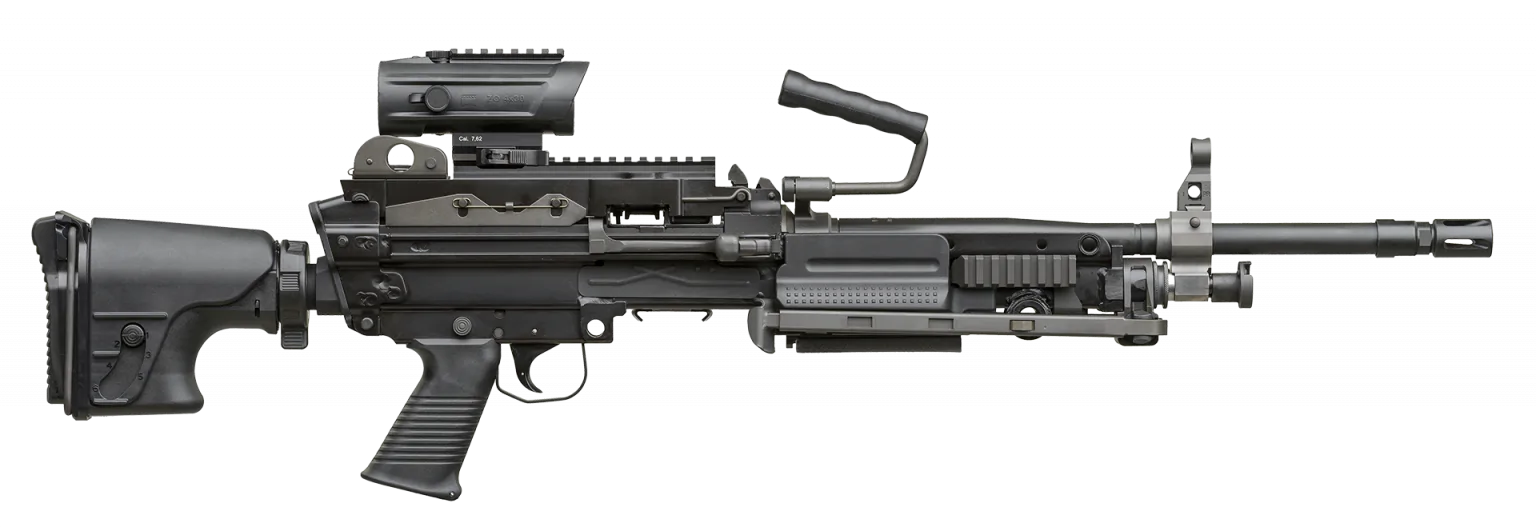 The FN MINIMI® 7.62 is a lightweight machine gun chambered in 7.62×51mm NATO, combining the proven reliability of the MINIMI platform with increased range and stopping power. Designed for mobility and sustained fire capability, it delivers the performance of a general-purpose machine gun in a lighter, more compact configuration.