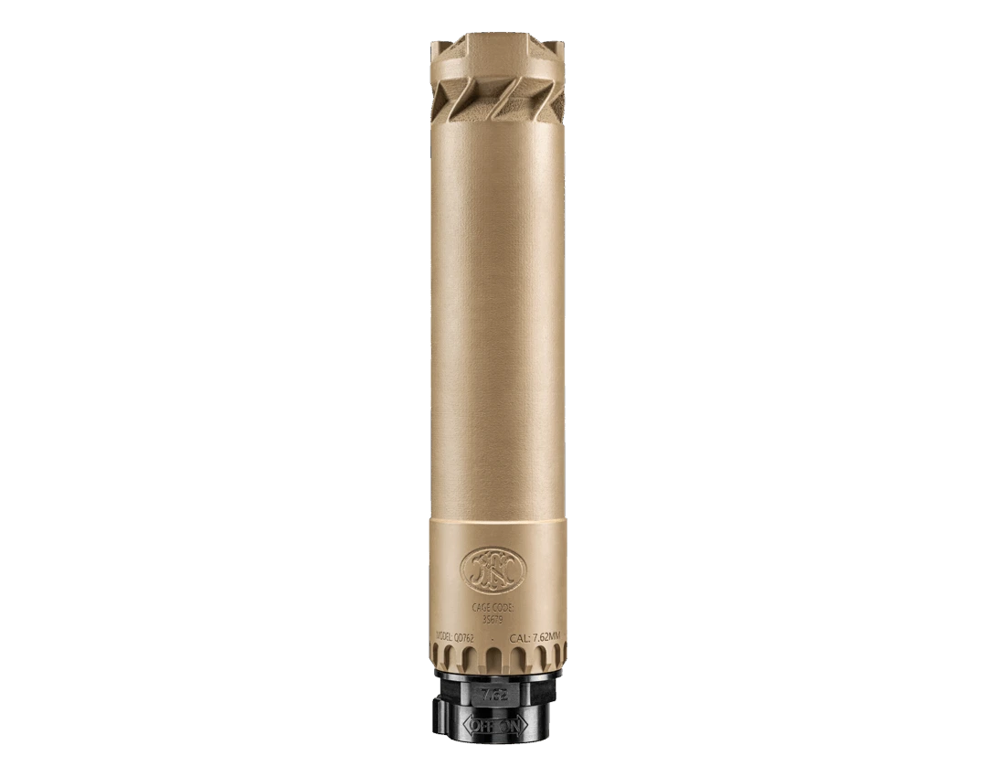 The FN QD762 is a 7.62mm quick-detach sound suppressor engineered for reliable performance and durability in demanding environments. Designed for compatibility with 7.62×51mm NATO platforms, it delivers effective sound and flash reduction while maintaining weapon balance and consistent operation.
