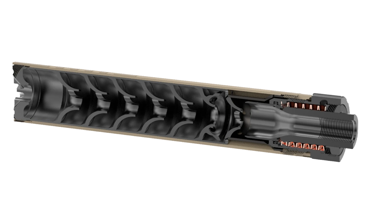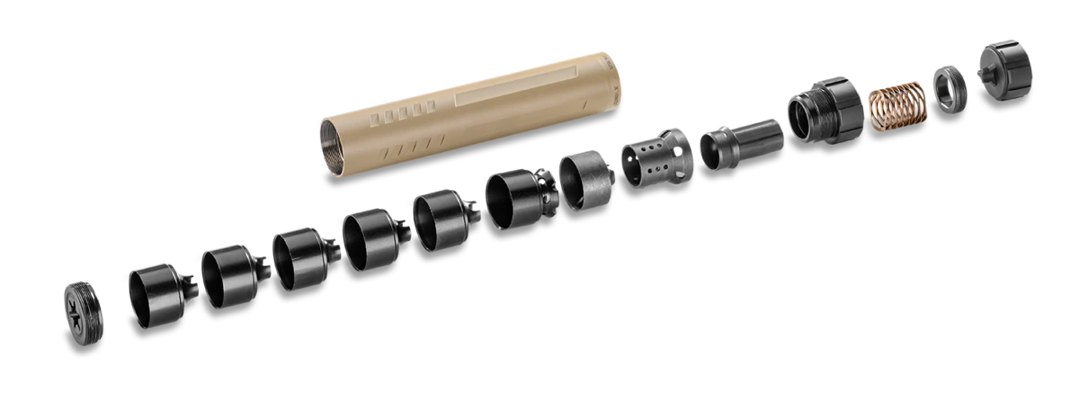 Routine maintenance involves periodic disassembly and cleaning of the baffle stack and mounting interface to remove carbon and fouling buildup, with the user-serviceable design and included tools making upkeep straightforward and preserving suppression performance.