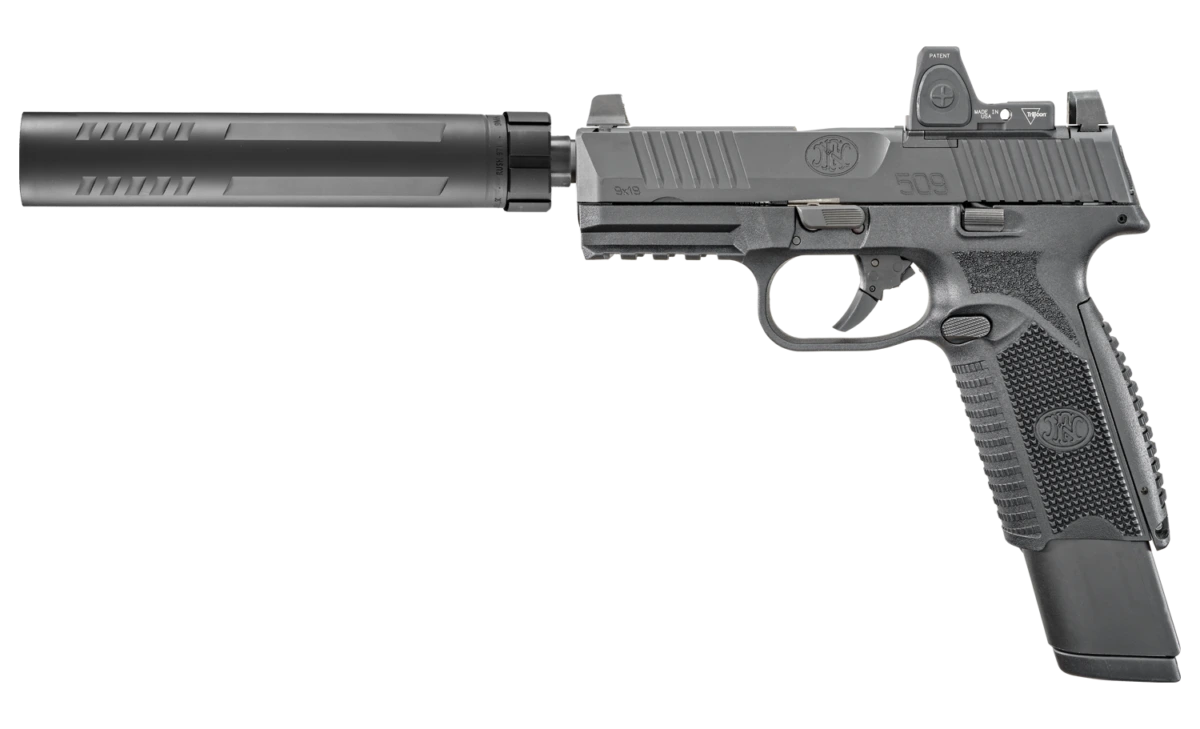 Engineered for reliable performance on threaded ½″×28 barrels like those on FN 509™-series pistols, it includes an advanced booster assembly and tight piston gas seal to reduce blowback and recoil, deliver smooth cycling across common ammunition types, and maintain accuracy with suppressor-height sights.
