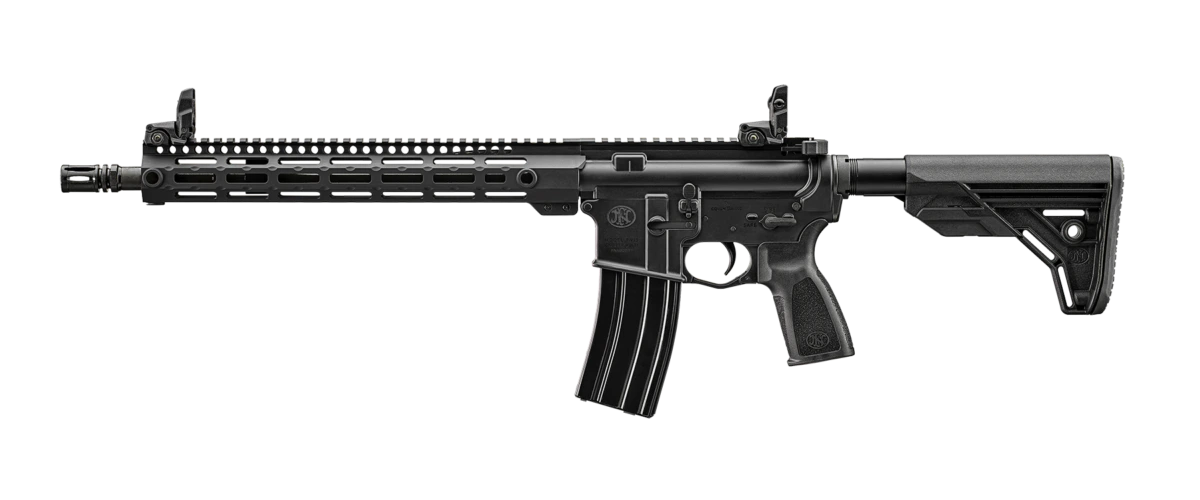 The FN 15 SRP G2P is a duty-grade 5.56×45 mm NATO semi-automatic carbine built on a MIL-SPEC AR-15 platform with hard-anodized aluminum receivers, a free-float extended M-LOK handguard with multiple QD sling points, ambidextrous controls, and a 16″ button-rifled, chrome-lined barrel that’s proof-tested to FN’s high service standards.