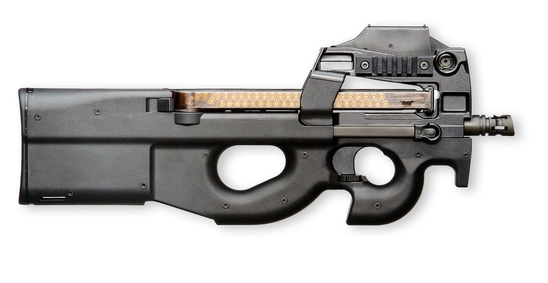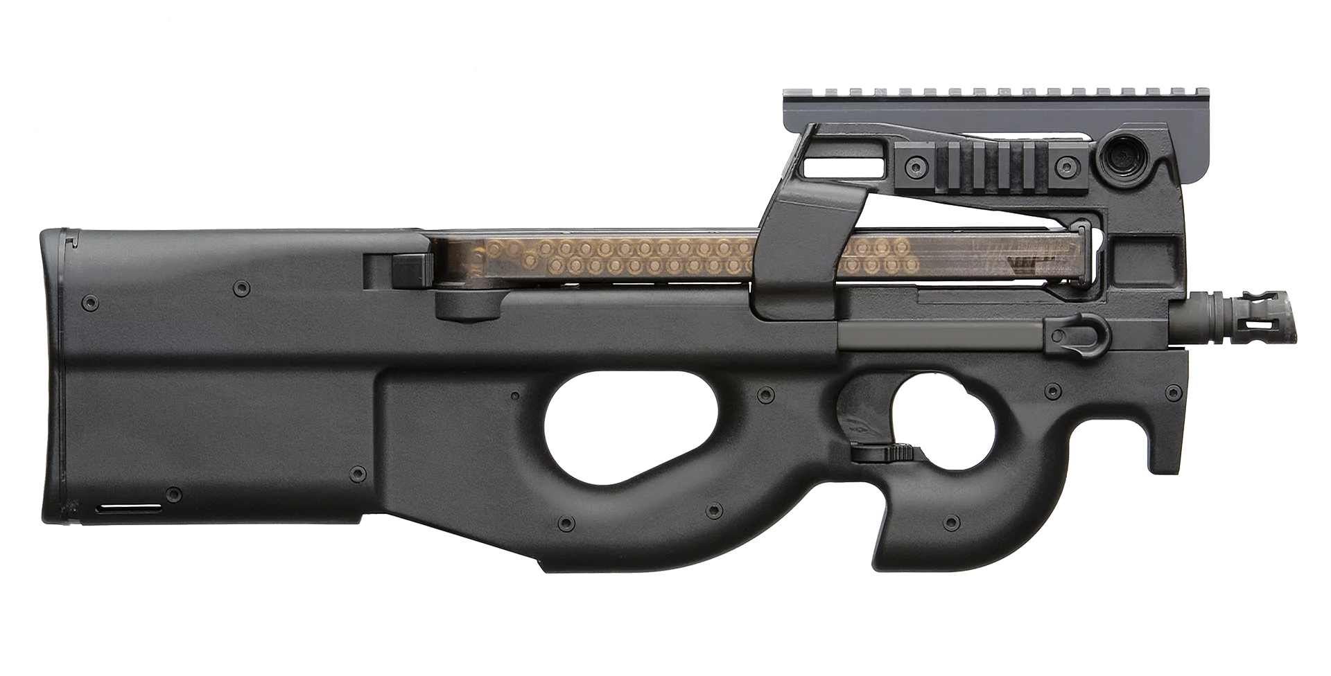 Featuring a top-mounted 50-round magazine, fully ambidextrous controls, and low recoil characteristics, the FN P90 delivers high-capacity performance and reliable operation in a streamlined, innovative platform.